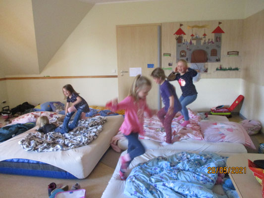 Im letzten Kita-Jahr entwickeln die Kinder nicht nur ein Bewusstsein dafür, dass sie in der Kita die "Großen" sind und sie nach den Ferien richtige Schulkinder sind, sie entwickeln zudem durch die vielfältigen "Riesen-Aktionen" eine tolle Gruppendynamik. Dazu gehört im letzten Kita-Jahr auch die Übernachtung in der Kita.