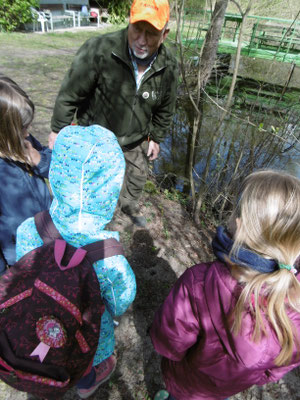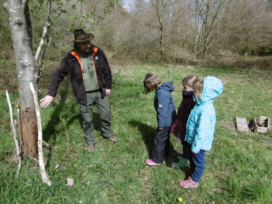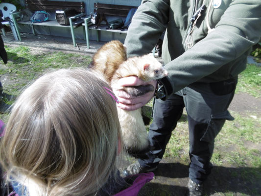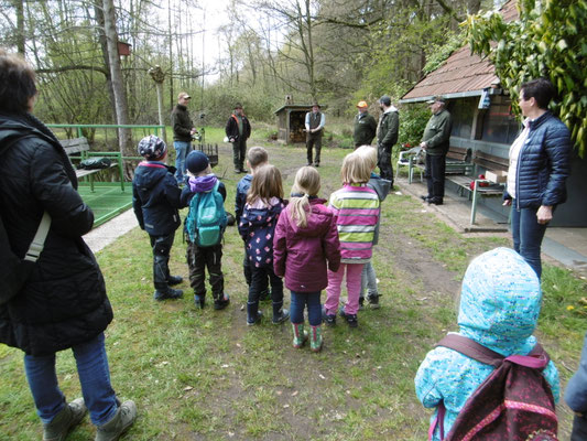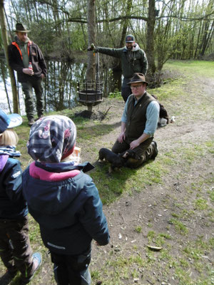 Zur Begrüßung ertönte ein Jagdhorngruß der Jäger und die Kinder wurden in den Jagdclub aufgenommen. Mit viel Geduld und Praxis wurde den Kindern Basiswissen rund um Wald und seine Bewohner vermittelt. Frettchen und Jagdhund haben ihre Arbeit anschaulich zum besten gegeben und die Kinder beeindruckt.