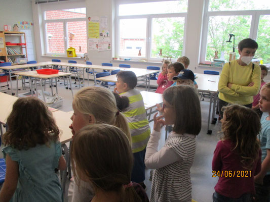 Kurz vor den Ferien waren die angehenden Schulkinder eingeladen die Schule zu besuchen. Alle Räumlichkeiten konnten in Augenschein genommen werden, so dass letztendlich auch der letzte Skeptiker überzeugt wurde: die Schule ist cool.