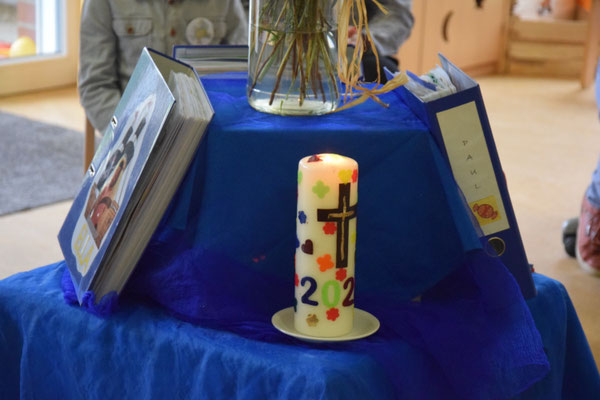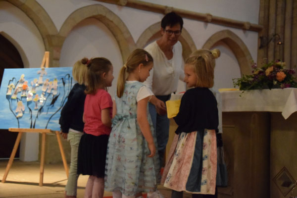 Nach dem Gottesdienst wurde jedem Kind in seiner Gruppe die Portfolio-Mappe überreicht.