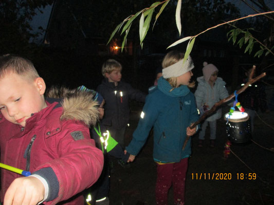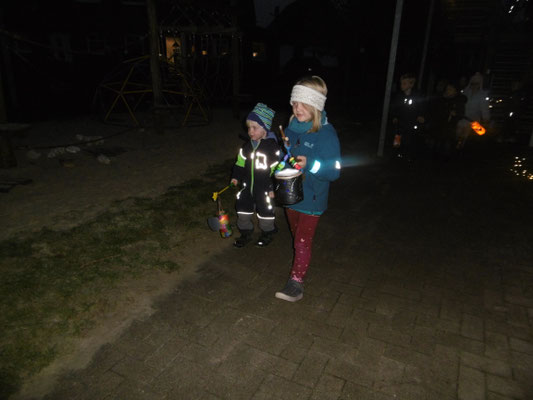 Mit der einbrechenden Dämmerung hat der kleine, aber bunte Umzug um das Kita-Gebäude herum, einen stimmungsvollen Abschluss ergeben.